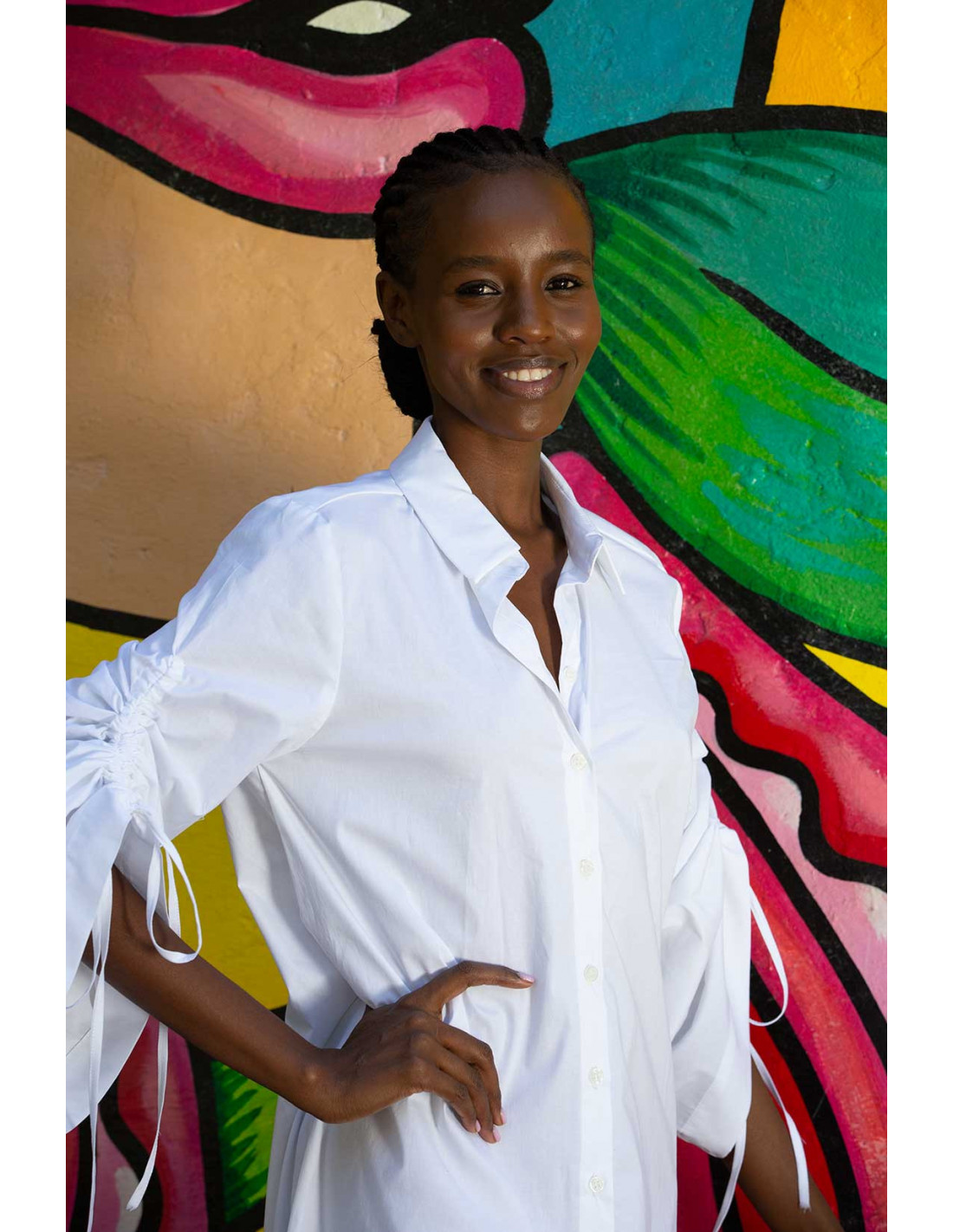 - Sleeves with adjustable string detail