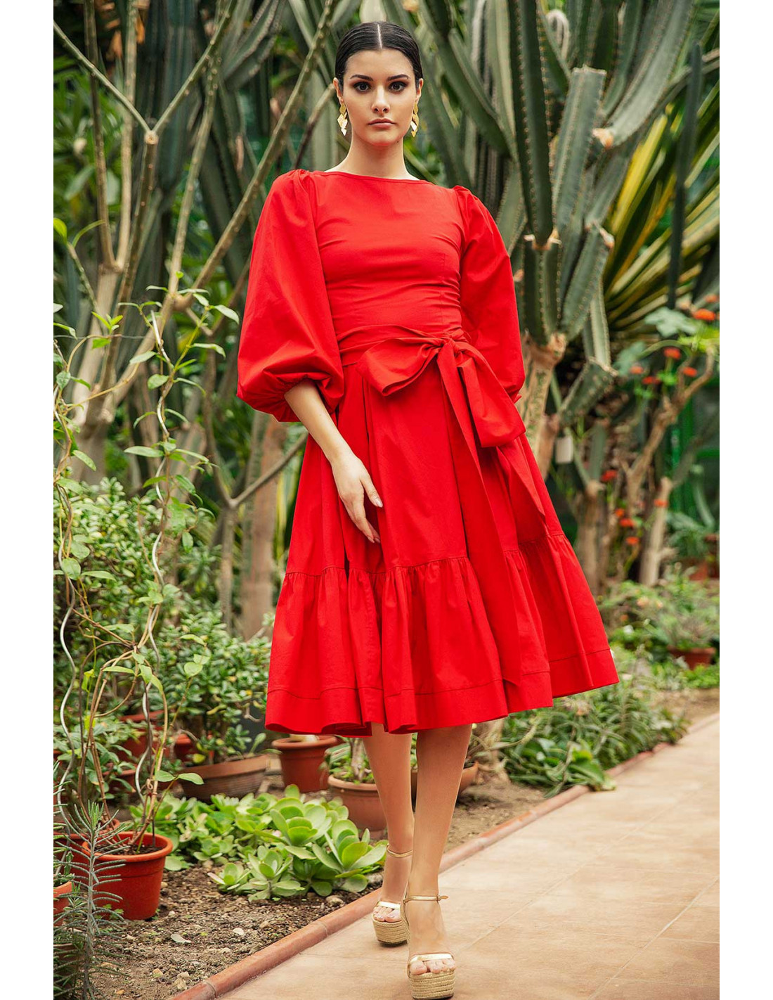 MIDI DRESS - WITH PUFFED SLEEVES
