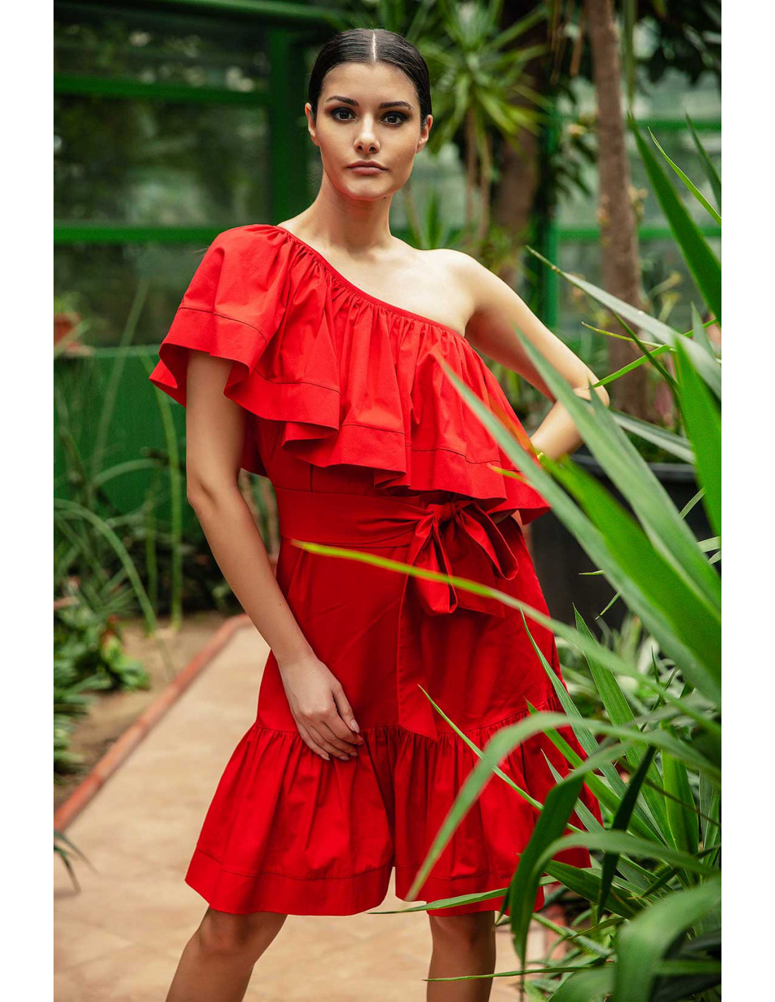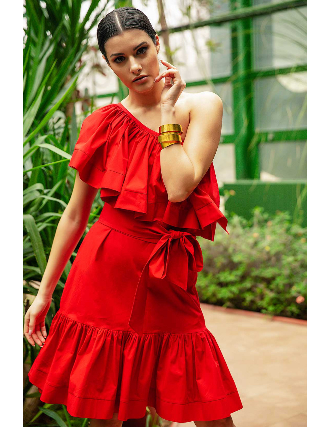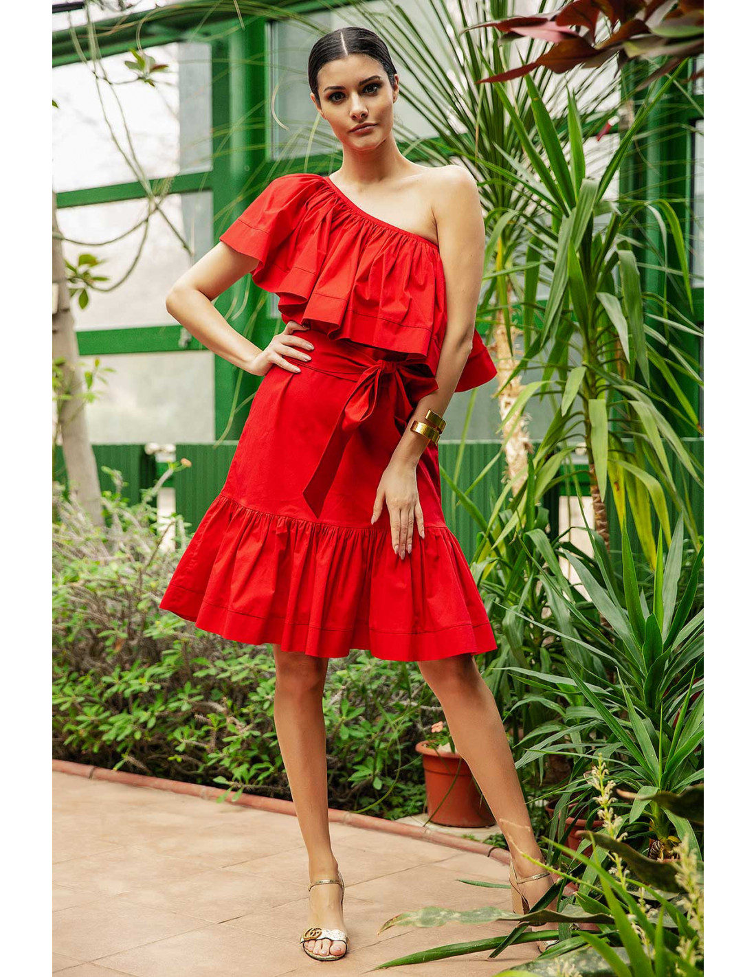 MIDI DRESS- WITH ONE SHOULDER RUFFLE TOP